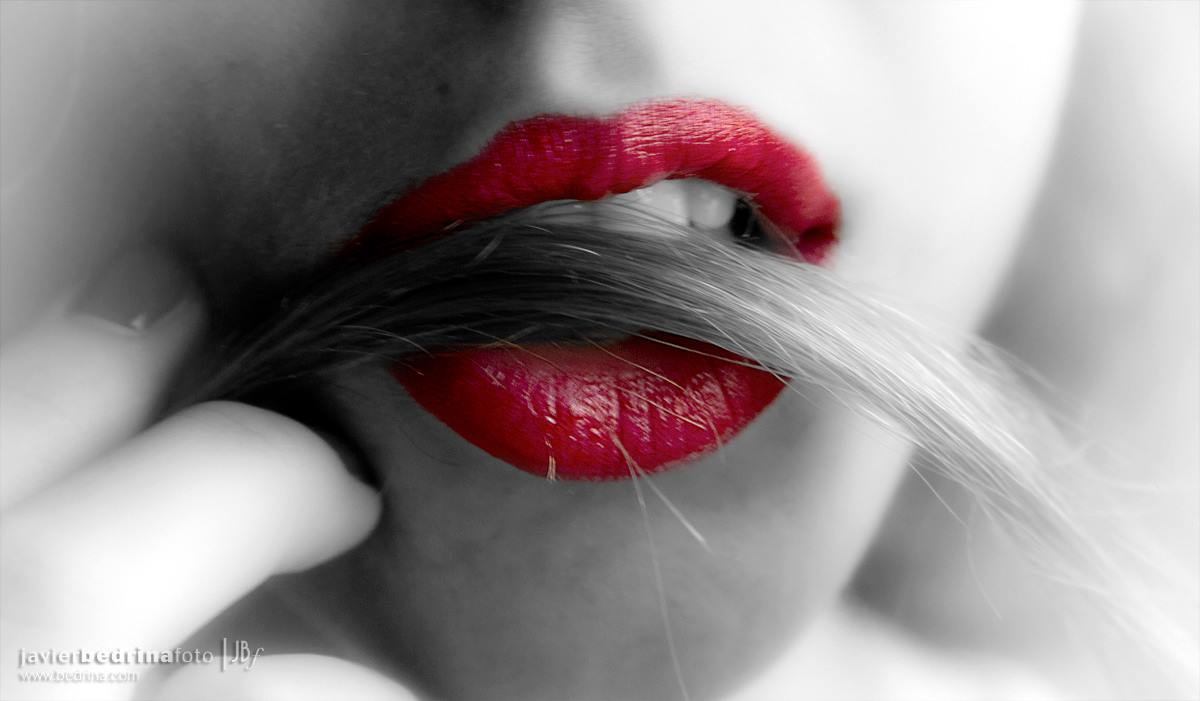 Unas veces introduce la punta en la boca, luego lo saca sin chuparlo, solo lo sostiene con los labios, y otras, juega con el mechón como si los perfilara.