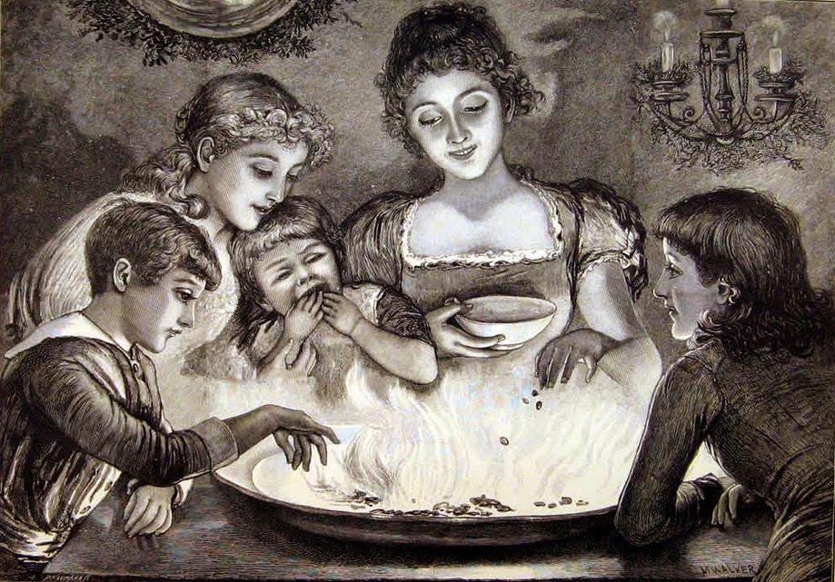 El Snapdragon consistía en asar peladillas y frutas en una sopera repleta de brandy ardiendo y apresarlas con la llama recién prendida, quemándose las manos o la boca entre gestos de dolor. Artículo: Juan Mari Barasorda. Compartir en XUn cuento de Navidad fue publicado el 19 de diciembre de 1843, ese cuento que todos recordamos del avaro Ebenezer Scrooge al que visitan los fantasmas de la Navidad quienes al final de la historia consiguen su redención. El reinado de la reina Victoria había empezado en 1838 y fue precisamente la familia real quien más hizo por la restauración de las tradiciones familiares en torno a la mesa de Nochebuena, pero nadie discute que fue Dickens quien inauguro la tradición del relato de fantasmas en la Nochebuena. Él no fue el primer escritor que incorporo el cuento como un elemento más de la celebración navideña ya que antes de Dickens el escritor americano Washington Irving había escrito en 1819 (Old Christmas) una recopilación de ensayos sobre las tradiciones inglesas en la navidad acompañado de los primeros cuentos de Navidad, pero después de Un cuento de Navidad de Dickens los más famosos magazines y periódicos de la Inglaterra victoriana incorporaron sus Cuentos de fantasmas por Navidad a sus números especiales de fin de año. Dickens, además, no se limitaba a publicar sus cuentos de Navidad sino que reunía a sus amigos en veladas en las que leía sus historias de Navidad a la luz de la lumbre. La velada de Dickens leyendo «Las campanas» en 1844 fue inmortalizada por el pintor Daniel Maclise en el mismo año. «Las campanas» es, en realidad, una historia del año nuevo, pero es, como Un cuento de Navidad, una historia que busca conmover, provocar el llanto —como se ve en el cuadro de Maclise— en el oyente, porque es una historia —como tantas de las contadas por Dickens—, que habla de la riqueza de unos pocos a costa de extrema pobreza de otros. «Las campanas» fue calificado como un relato «radical» pero su contenido y su moraleja tienen perfecta cabida para la sociedad en que vivimos.